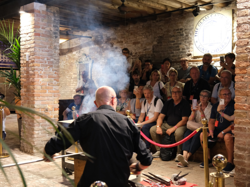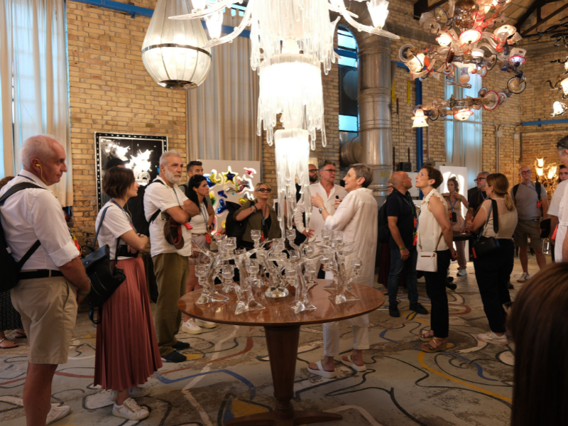 Il culmine dell’esperienza è stato il giorno del Redentore: una navigazione tra le isole della laguna, da Burano a Murano, dove abbiamo assistito alla magia dei maestri vetrai e vissuto una cena esclusiva nella suggestiva Glass Cathedral. Un momento di rara intensità, arricchito dalla visita alla Cattedrale di Najean, antica fornace trasformata in tempio creativo dall’artista Aristide Najean.